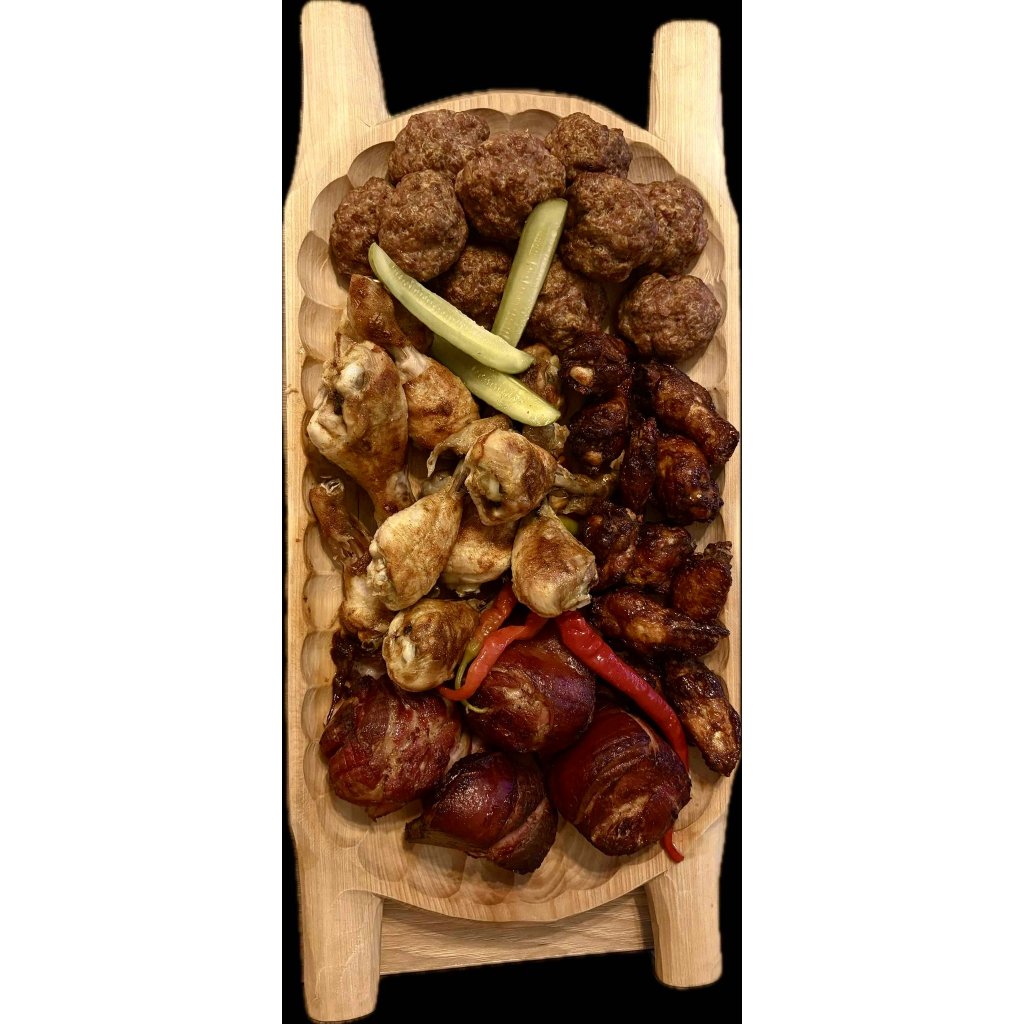 BBQ kuřecí křidélka – 500 g Masové kuličky – 1 000 g Kuřecí špalíky -10ks Uzené kolínko – 4 ks Váha celkem: 3 500 g
